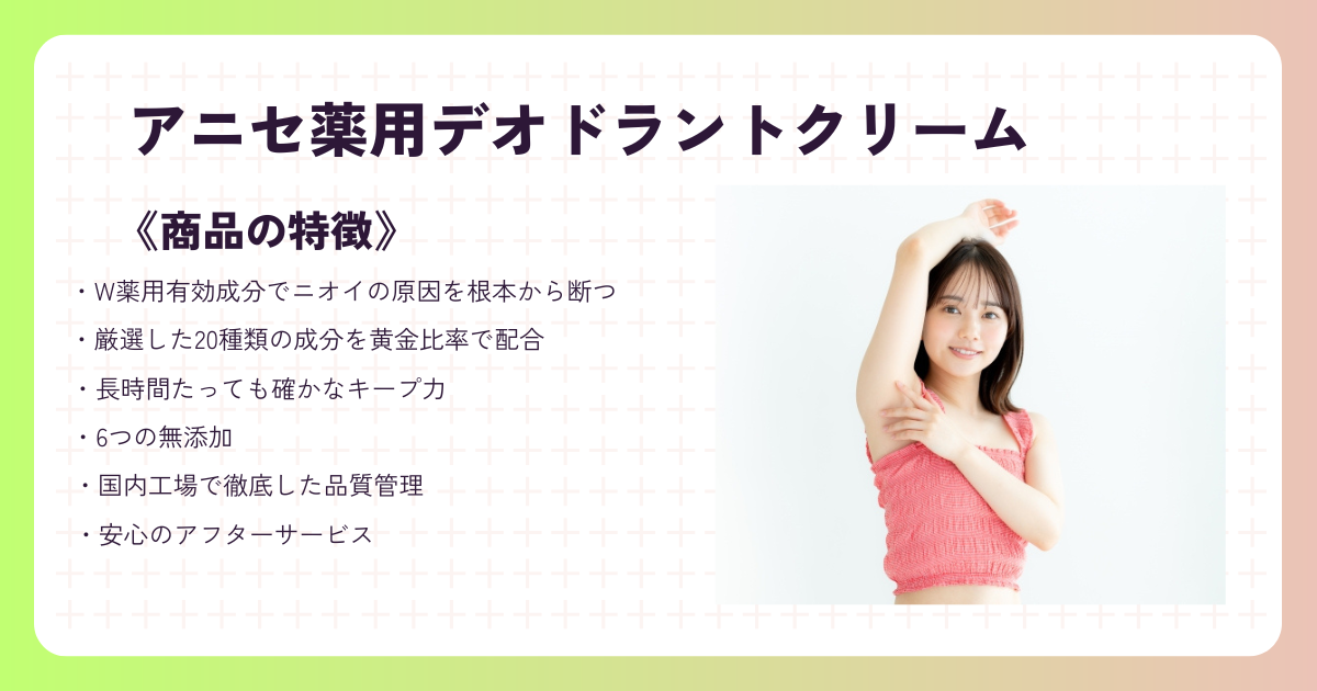 アニセ薬用デオドラントクリームは、ニオイに悩むすべての方の強い味方です。