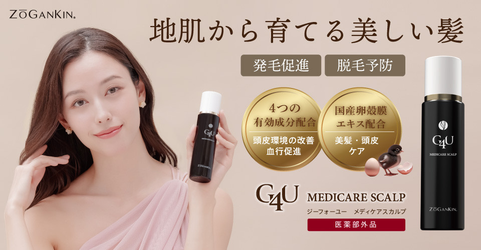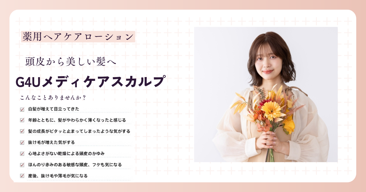 g4uメディケアスカルプは、白髪の発生を抑えるサポート と スカルプ環境の改善 の両方にアプローチできる薬用育毛剤です。