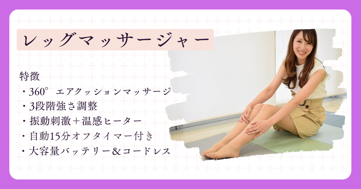 レッグマッサージャーは、ふくらはぎや太ももを中心にエアバッグや振動、温熱などの