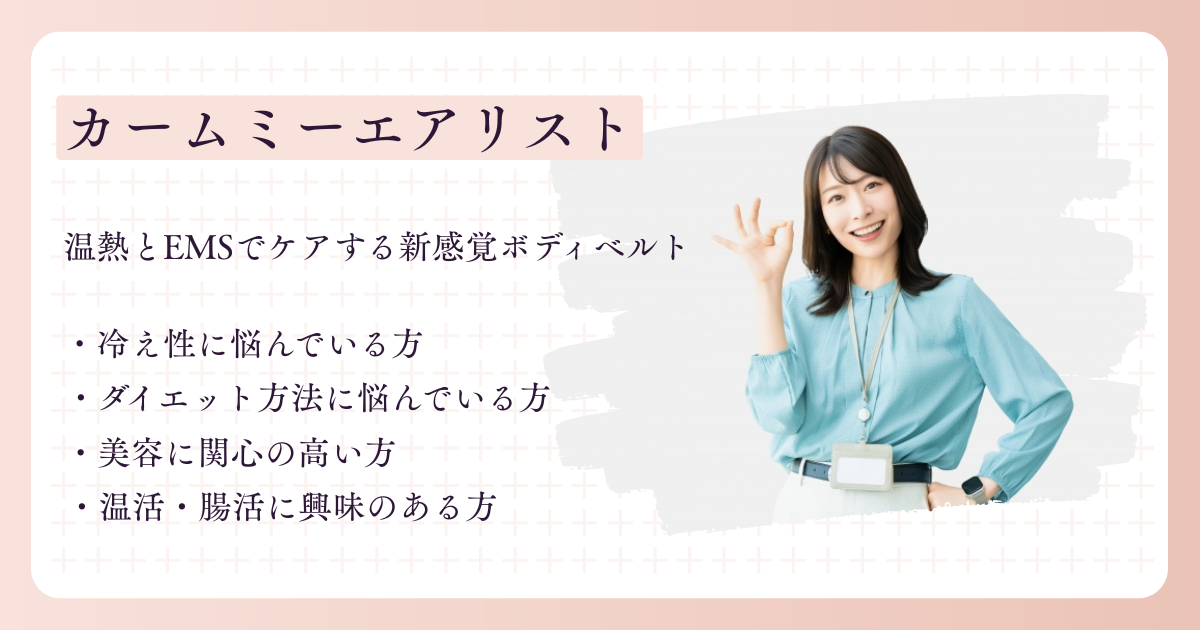 近年、温活・腸活アイテムが数多く登場していますが、その中でも注目を集めているのがCalmMeブランドの「カームミーエアリスト(calmme airyst)」です。温熱とEMS(電気的筋肉刺激)を組み合わせたウェアラブル機器として、体の冷え対策やお腹周りのケア、リラックスサポートなど幅広いニーズに応えています。