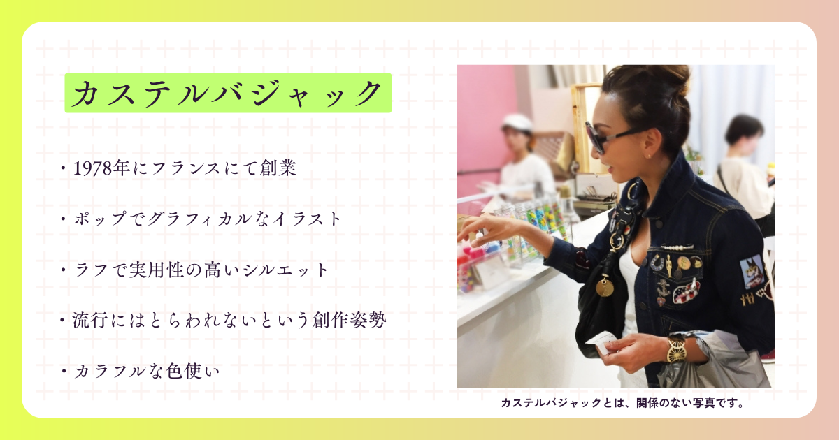 このように、カステルバジャックは単なる流行ブランドではなく「独自性を追求するファッションブランド」としての歴史を持っています。