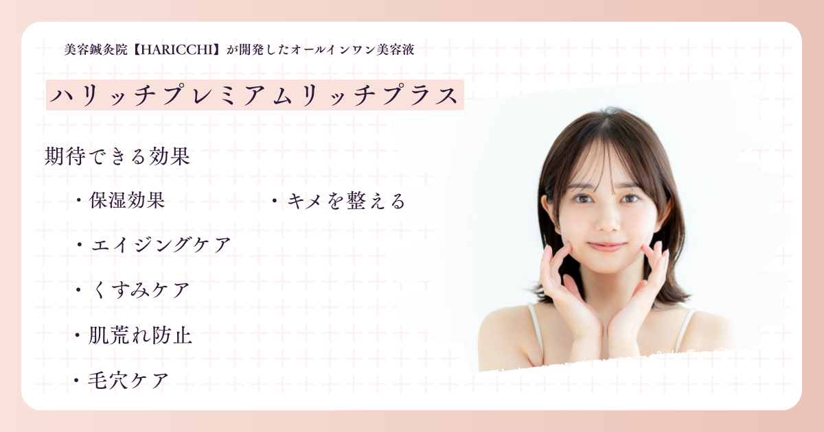 ハリッチプレミアムリッチプラスは、「塗る美顔鍼」とも呼ばれるオールインワン美容液。美容鍼灸サロン「銀座ハリッチ」が監修・開発しており、プロの美容知識と先進的な成分を掛け合わせたスキンケアアイテムです。