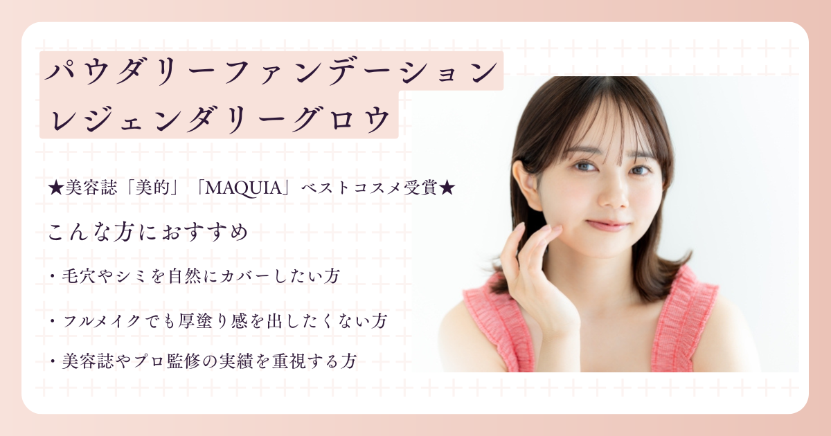 そんな中、美容誌でも高評価を受けている「パウダリーファンデーション レジェンダリーグロウ」が注目されています。パウダーをクッションパフで塗布する新発想により、軽やかでありながら毛穴レスな仕上がりを叶えると話題になっています。