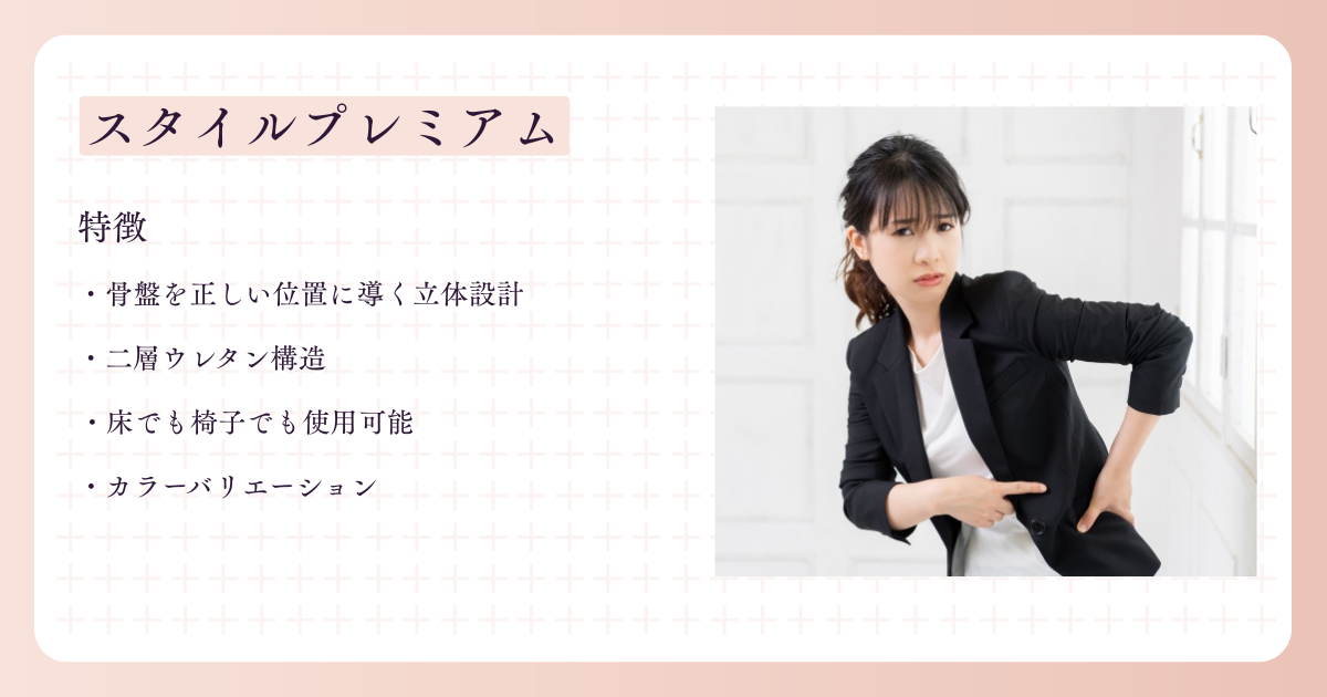 「腰のハリがひどく、夕方になると立ち上がるのが辛いほどでしたが、スタイルプレミアムに変えてからは本当にラク。自然と背筋が伸びるので、意識しなくても姿勢が整います。」