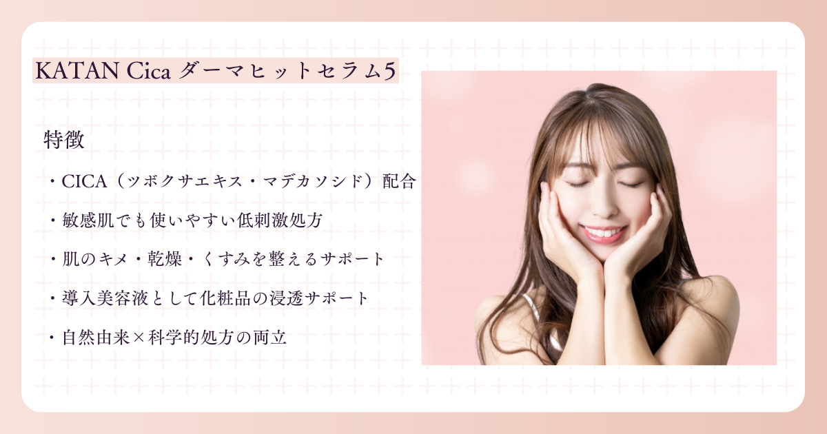 KATAN Cica ダーマヒットセラム5は、CICAのやさしさと導入美容液の即効性を融合した新時代のスキンケア。