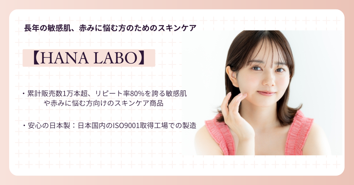 肌の赤みやヒリつき、季節の変わり目になると不安定になる敏感肌。「合わない化粧品を使うとすぐ荒れる」「できるだけ刺激の少ないスキンケアを選びたい」そんな人たちの間で注目されているのが Hana Labo(ハナラボ) です。